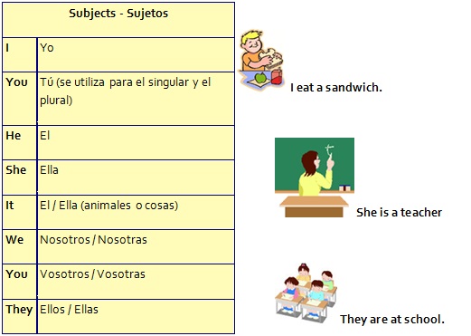 En esta tabla pueden observarse los sujetos usados en inglés.