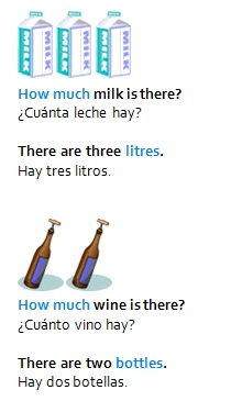 También se usan en forma genérica para preguntar “cuánto hay”. En este caso, van seguidas del sustantivo y luego, is / are there.