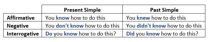 | We didn’t know | No sabíamos. Es la forma pasada negativa del verbo know |