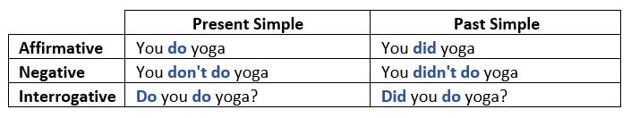 Los modos negativo e interrogativo se forman con el auxiliar “DID” (pasado de “DO”):